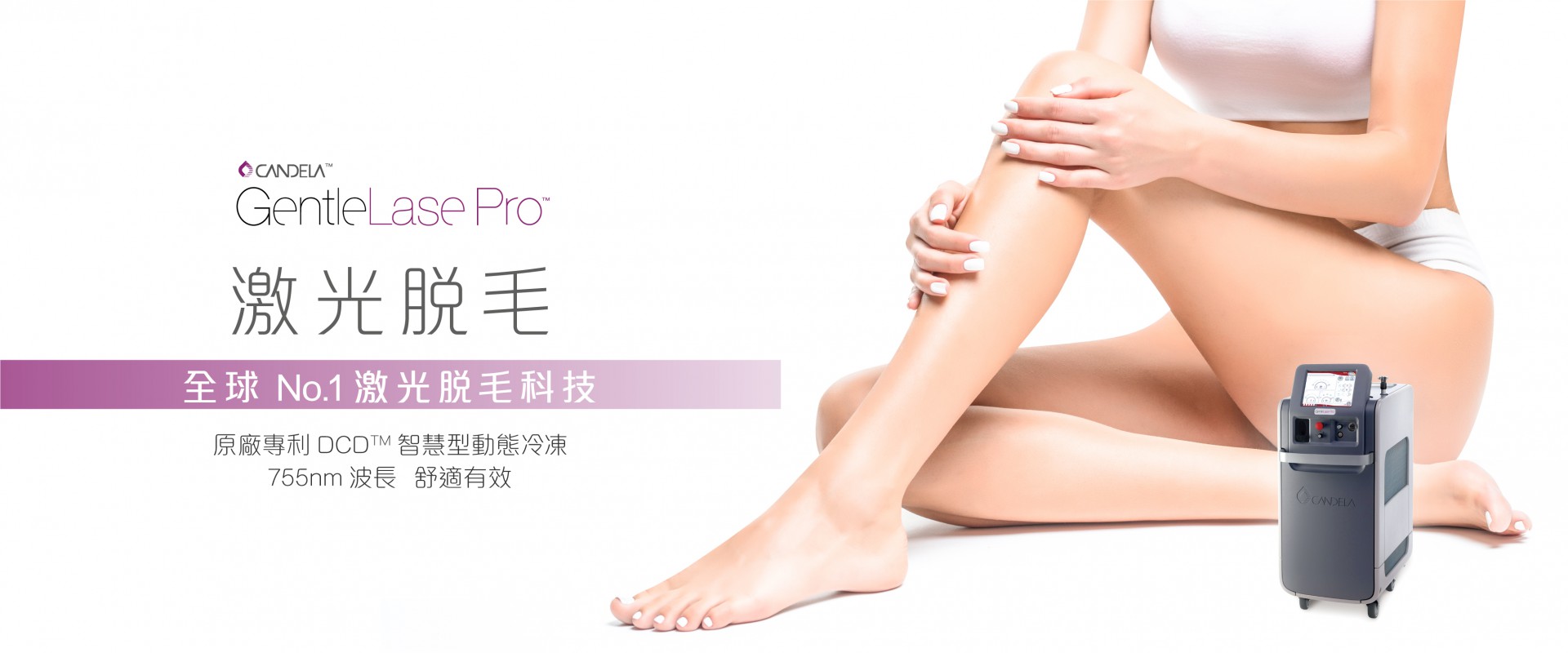 採用CANDELA獨有的原廠專利DCD™ (Dynamic Cooling Device™) 智慧型動態冷凍系統,在發射激光前毫秒間噴射-20度霧態冷凍劑CRYOGEN,有效保護、冷凍及鎮靜紓緩肌膚,避免皮膚灼傷之餘,令激光脫毛療程變得舒適無痛。