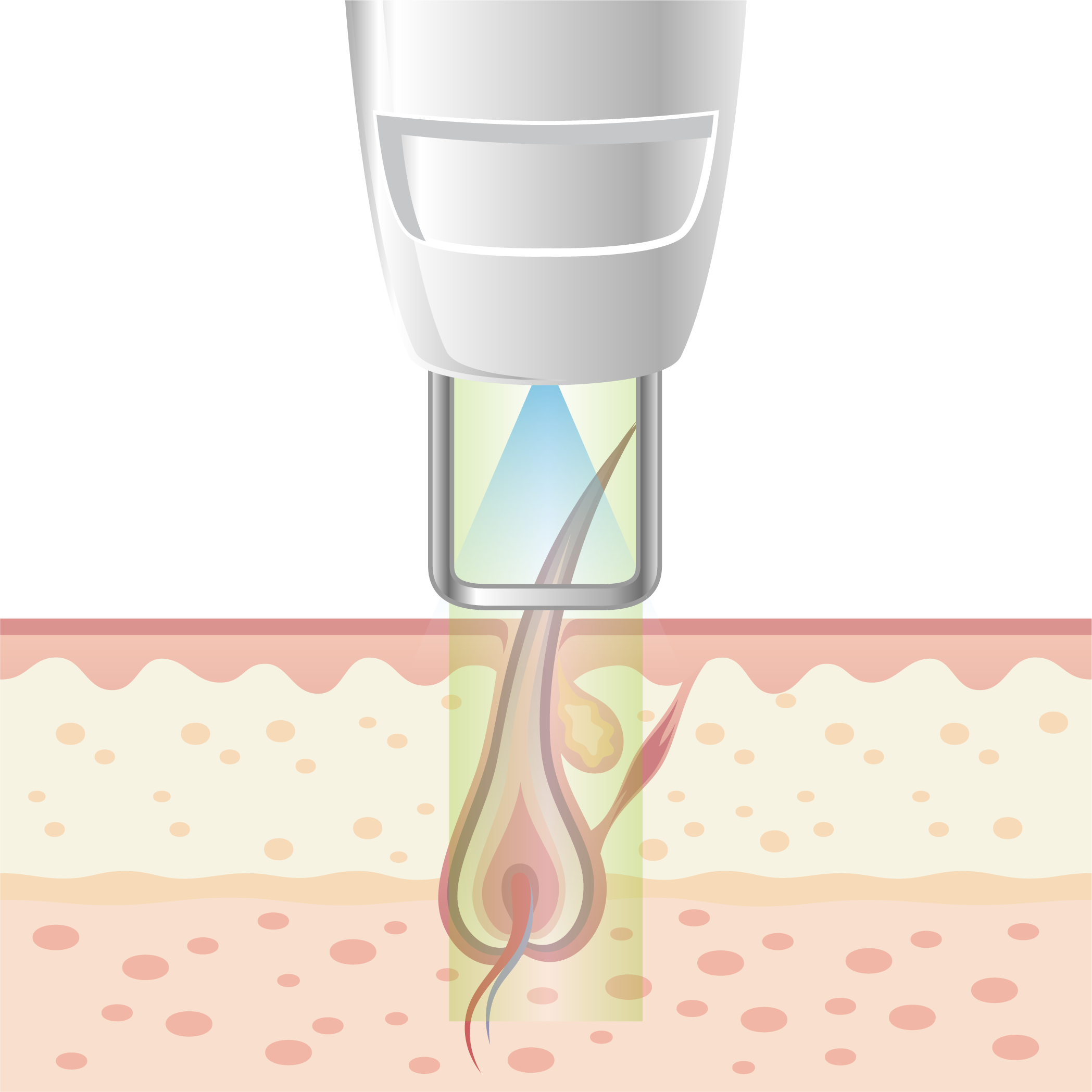 以755nm波長的激光能量滲透到毛囊根部,光源被毛髮的黑色素吸收後,所產生的高熱會破壞毛囊組織,令毛髮枯萎脫落,因此能在無損周邊皮膚組織的情況下,徹底破壞毛囊組織,解決毛毛煩惱。