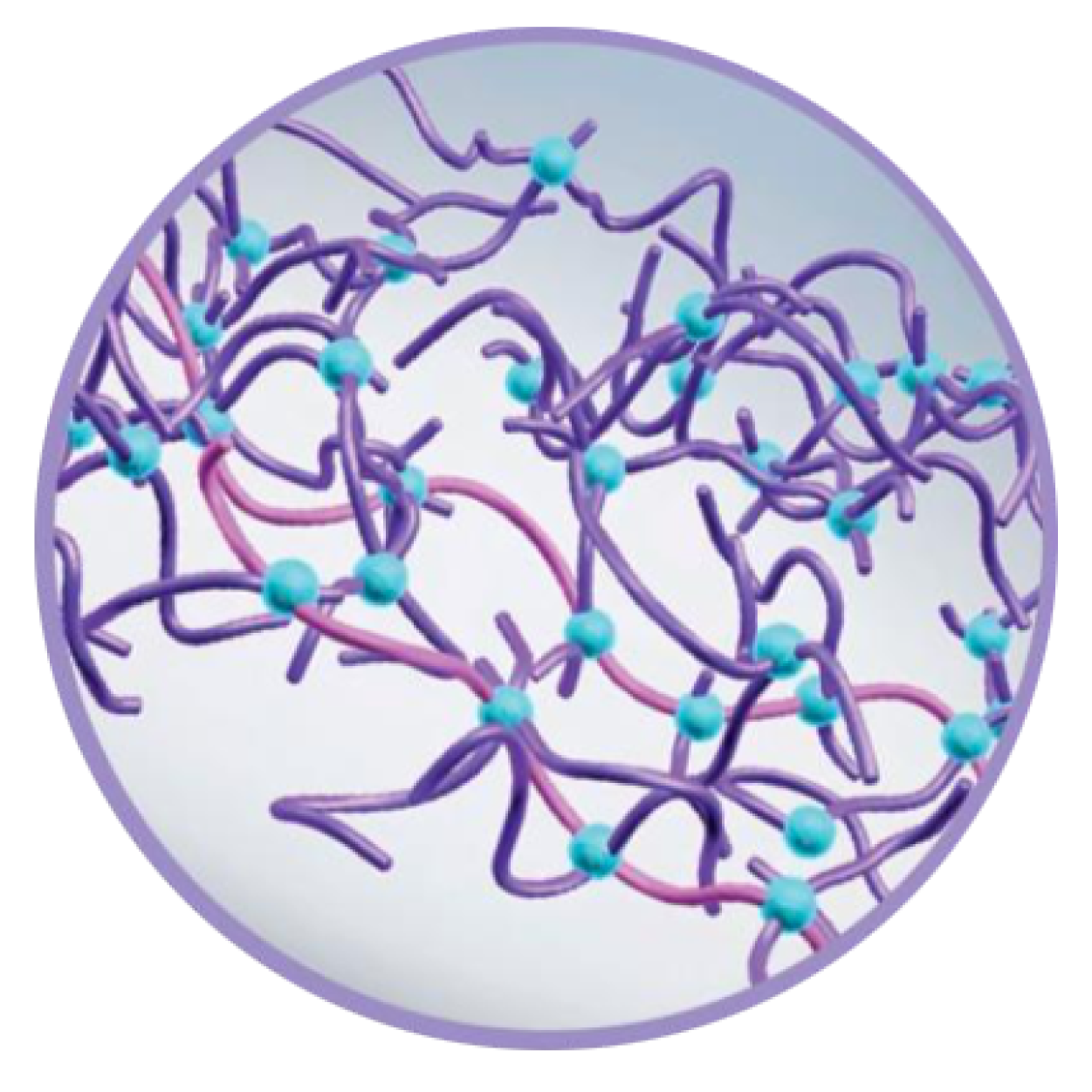 專利交聯鏈結科技 混和短及長鏈透明質酸,產生高效立體凝膠,與肌膚自然融為一體締造柔順而長效立體提昇的豐顏效果。