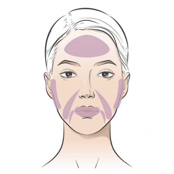 額頭、提眉、臉頰外側、法令紋、木偶紋、豐唇