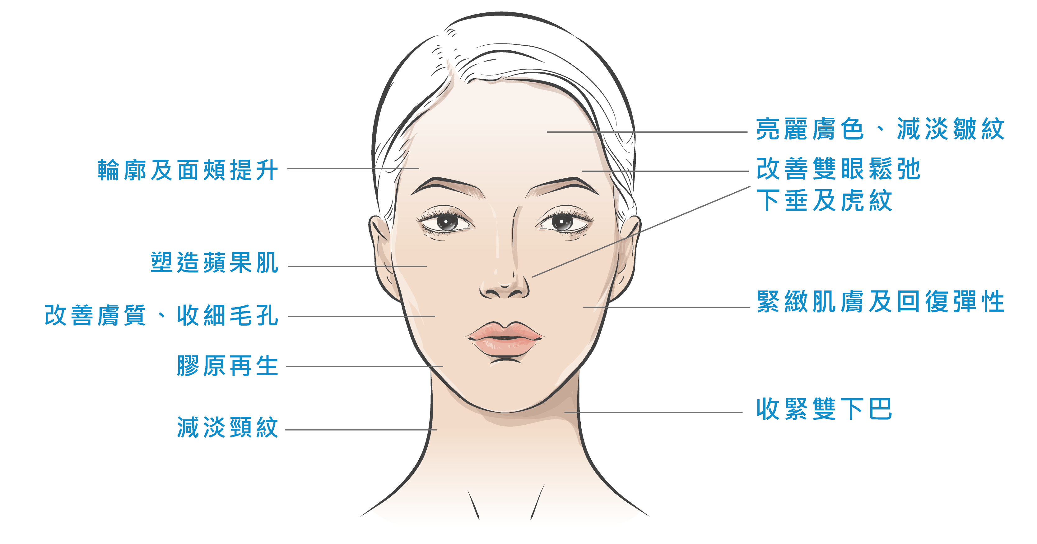膠原蛋白遂漸增生,結構緊密整齊肌膚緊緻、飽滿全面輪廓提升。
