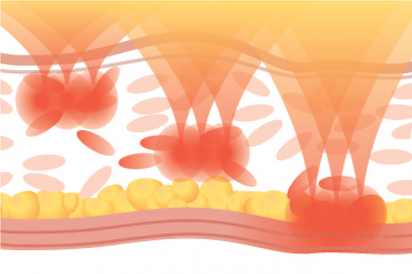 Liftera-V韓式無針埋線以TDT (熱點擴散)技術,以5-7 Hz快速輸出穩定超聲波熱點,通過在皮膚內3.0mm、4.5mm特定深度擴散加熱,將隱形能量線埋入真皮層及肌腱膜(SMAS),編織出皮膚支架,輕鬆拉提出面部輪廓!