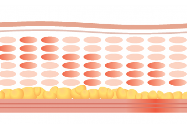 膠原蛋白萎縮、減少。結構鬆散。真皮層缺乏彈性,肌腱膜失去承托力。