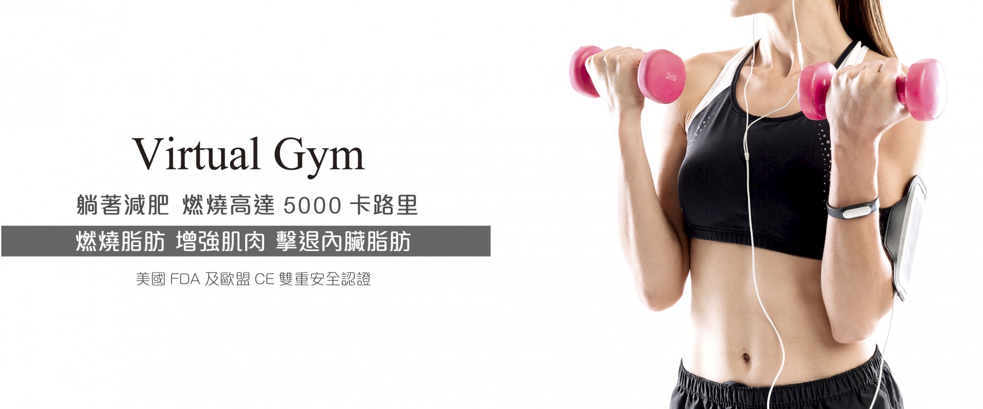 英國製造,美國FDA及歐盟CE雙重認證— Virtual Gym由英美分子生物學家Dr. Gerry Pollock研發出「生物共振訊號科技」,能夠啟動腦部訊號的運動頻率,將運動訊息經運動神經傳遞到腦部(模擬真實運動模式),讓腦部收到運動訊息後,會發出指令讓身體釋放有關燃燒脂肪及增強肌肉的荷爾蒙,達到躺著減肥及修飾線條效果。