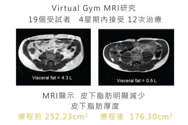 內臟脂肪存在於腹腔內,圍繞着內臟器官,有支撐、穩定和保護作用,但長期內臟脂肪過高會導致高血脂、心腦血管等疾病。一般減肥儀器只能做到減去皮下脂肪, Virtual Gym不單能減去皮下脂肪及有收緊身型的效果,更能有效地減去一般運動都不容易減去的內臟脂肪層。