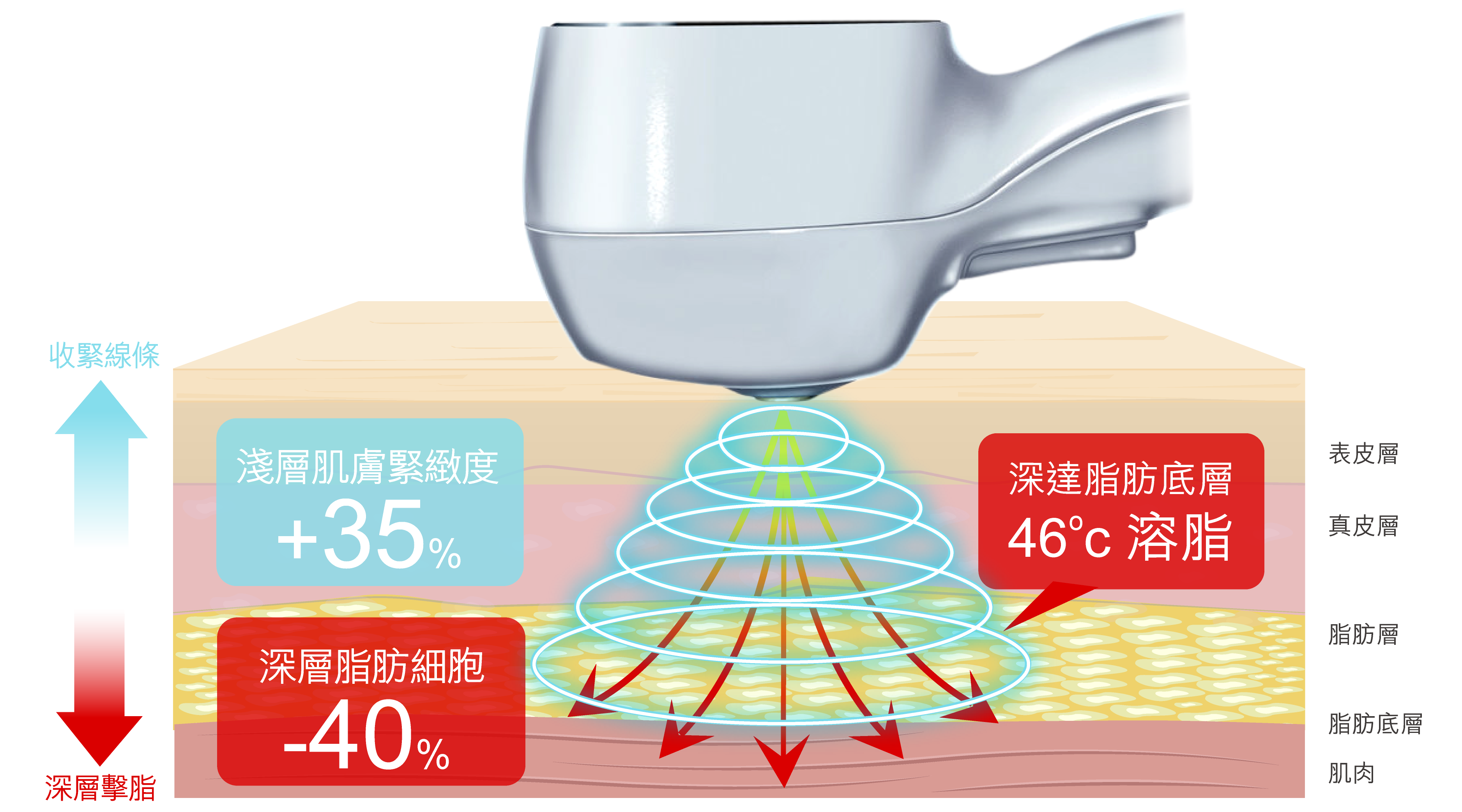 深入脂肪底層,引發脂肪細胞淍亡,達至消除脂肪效果