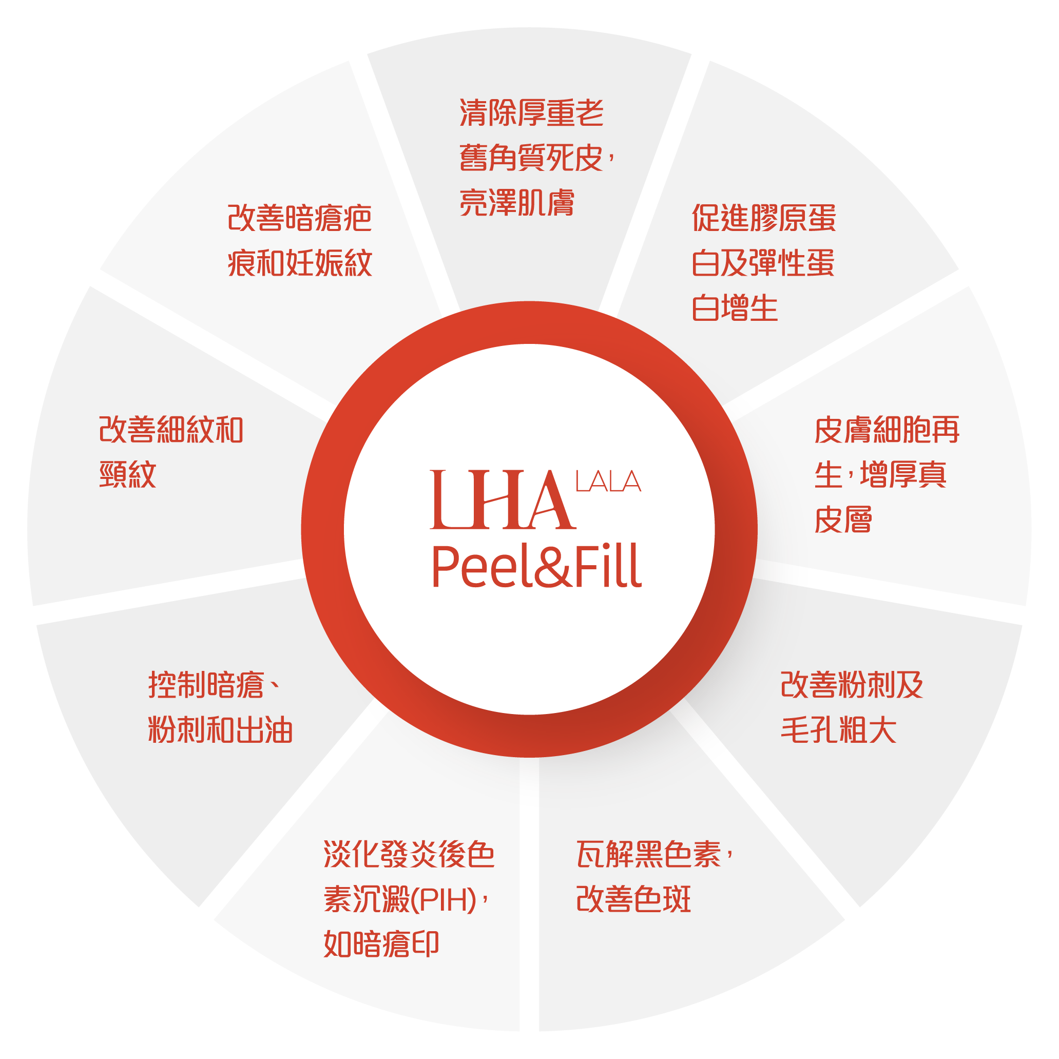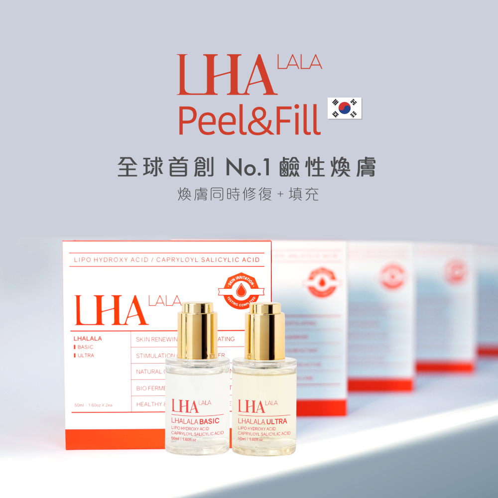 LHALALA Peel & Fill是來自韓國的醫學專業換膚品牌,榮獲韓國第一屆最佳Peel品牌,以獨特國際專利技術配方,為面部肌膚煥膚再生。